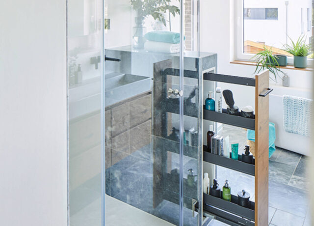 Badezimmer sind in Größe und Zuschnitt oft sehr individuell. Maßgeschneiderte Badmöbel bieten großen Gestaltungspielraum, den vorhandenen Platz bestmöglich zu nutzen. Ob Masterbad oder Gästebad, mit Maßeinbaumöbeln wird jeder Raum zur Wohlfühloase. Möbel zum Sitzen laden zum Entspannen ein und bieten zusätzlichen Stauraum. Schiebetüren verbergen und schützen nicht benötigtes Equipment, Kosmetik und Handtücher. Maßgenaue Spiegel auf hängenden Paneelen ermöglichen interessante Blickrichtungen und bringen Tiefe in kleine Bäder.